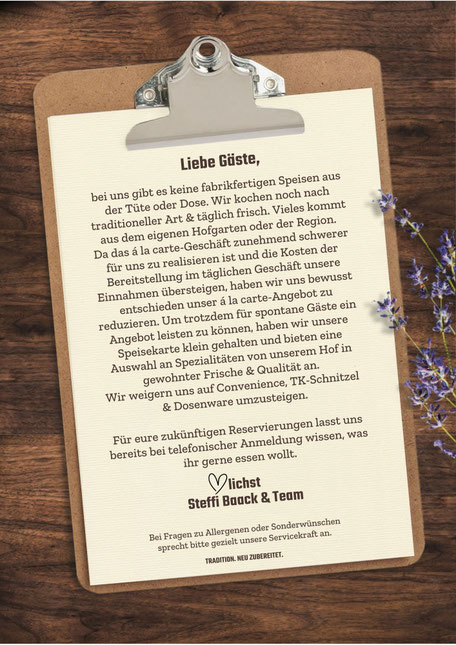 Nicht das Richtige dabei? Wir kochen frisch und haben wechselnde Tagesangebote. Ruft einfach durch bei Fragen oder Wünschen.